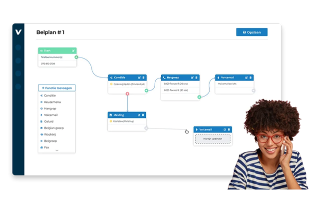 Met ons unieke klik-en-sleep systeem bouw je binnen enkele minuten de meest flexibele belplannen en beheer je bestaande belschema’s. Direct een 085 nummer aanvragen en een belplan opstellen binnen 2 minuten.